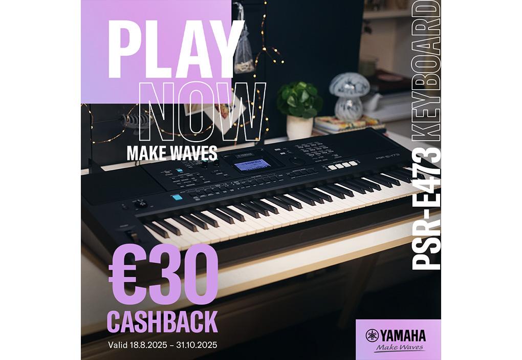 Profiteer opnieuw van een prachtige Back to School Actie: Yamaha's Play Now! Er zijn cash backs op enkele prachtige piano's: YDP-165, YDP-145, de nieuwe P145Bt en de P225. Bij registratie wordt de cash back op je rekening gestort. Bovendien, zijn er enkele prachtige gitaren waar eveneens de cash back geldt: FG800 reeks, FG820 reeks, APX600 in meerdere kleuren, de drie Storia modellen. Ook bij het PSRE-473 keyboard is er een gelijkaardige actie met cash back.
